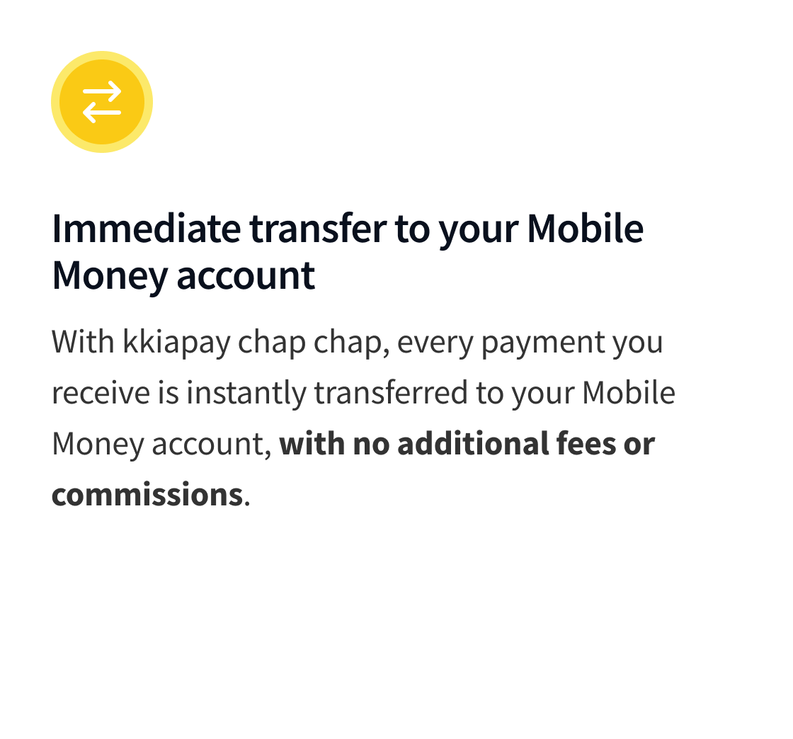 Each transaction is credited immediately to your Mobile Money account, allowing you to track your sales in real time and manage your cash flow without delay.