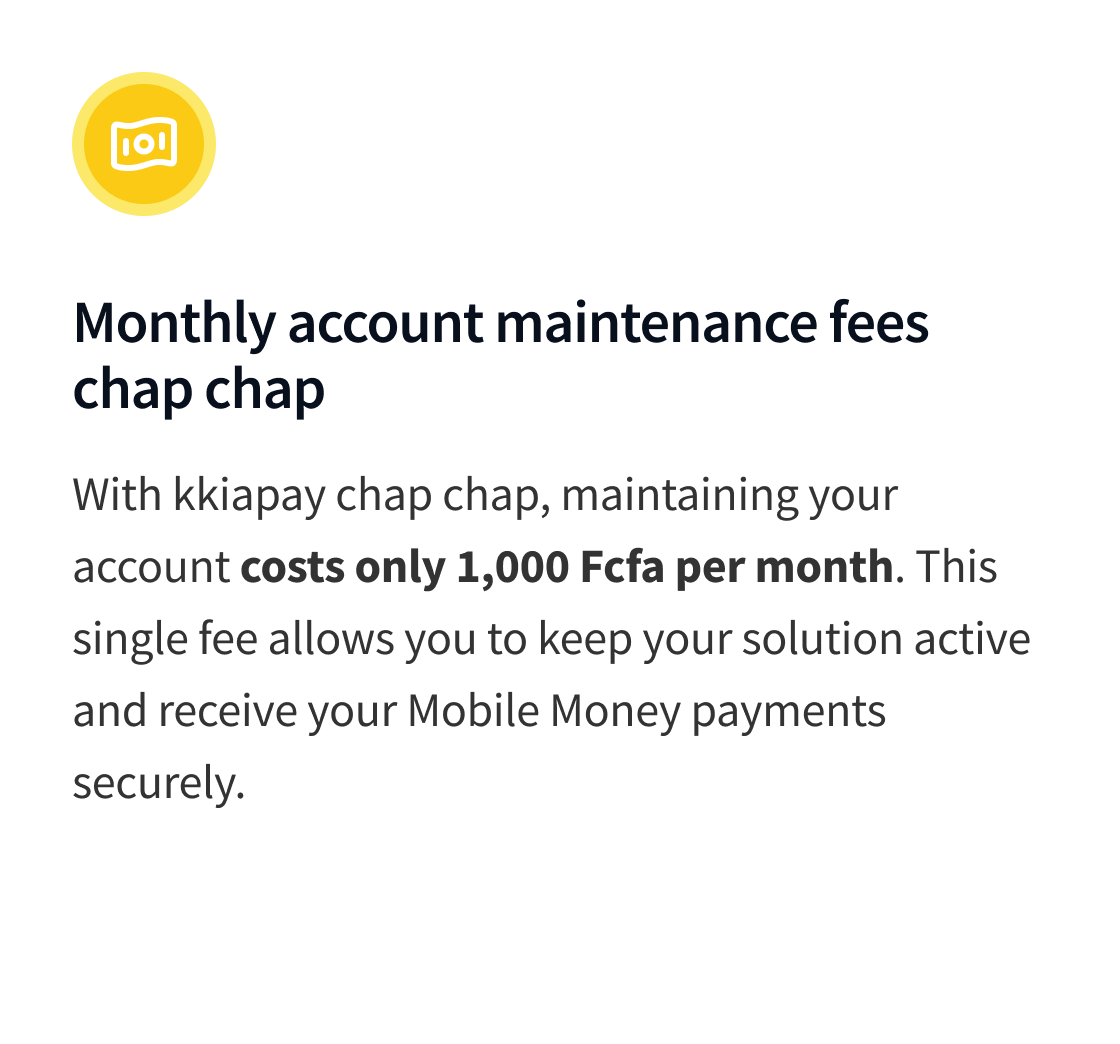With kkiapay chap chap, you don’t need any complicated equipment: a simple QR Code or USSD code is all you need to receive your payments directly on your phone.